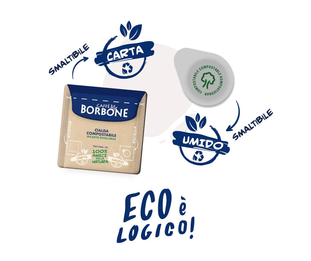 - Commercially Compostable: Caffè Borbone uses sustainable packaging for its espresso pods. Thanks to our ongoing commitment to research and development, the packaging can be recycled into paper, while preserving the same quality and taste you'd expect from authentic neapolitan espresso